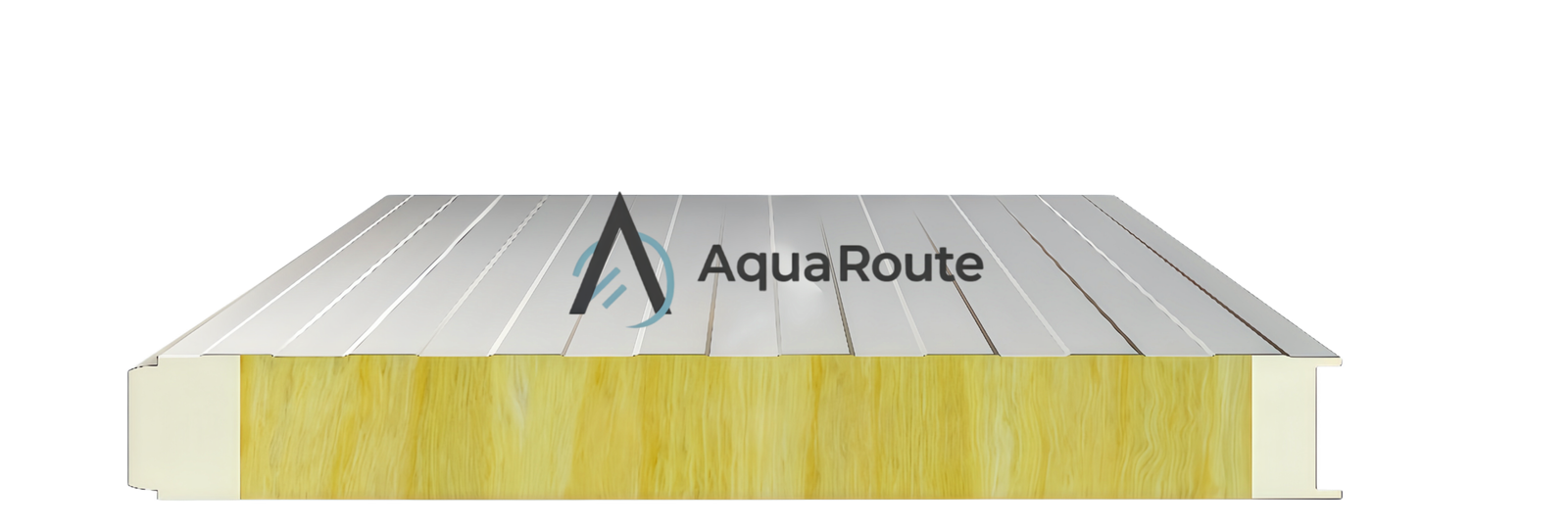 Aqua Route Polyurethane Edge-Sealing Glass Wool Interior Wall Panel combines the Class A non-combustible fire performance of glass wool core with the superior waterproofing, airtightness, and thermal bridge blocking of polyurethane edge sealing, tailored for interior partitioning. The glass wool core delivers outstanding fire resistance, sound absorption, and thermal stability, while polyurethane edges enhance overall insulation, moisture resistance, and durability, preventing core absorption for a comfortable, stable indoor environment and reliable long-term performance.